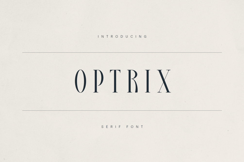 Optrix is a refined serif typeface designed to bring sophistication and charm to your creative projects. With its high contrast strokes, elongated letterforms, and stylish curves, Optrix blends classic editorial flair with contemporary elegance—perfect for luxury branding, wedding stationery, high-end packaging, editorial design, and boutique visual identities.