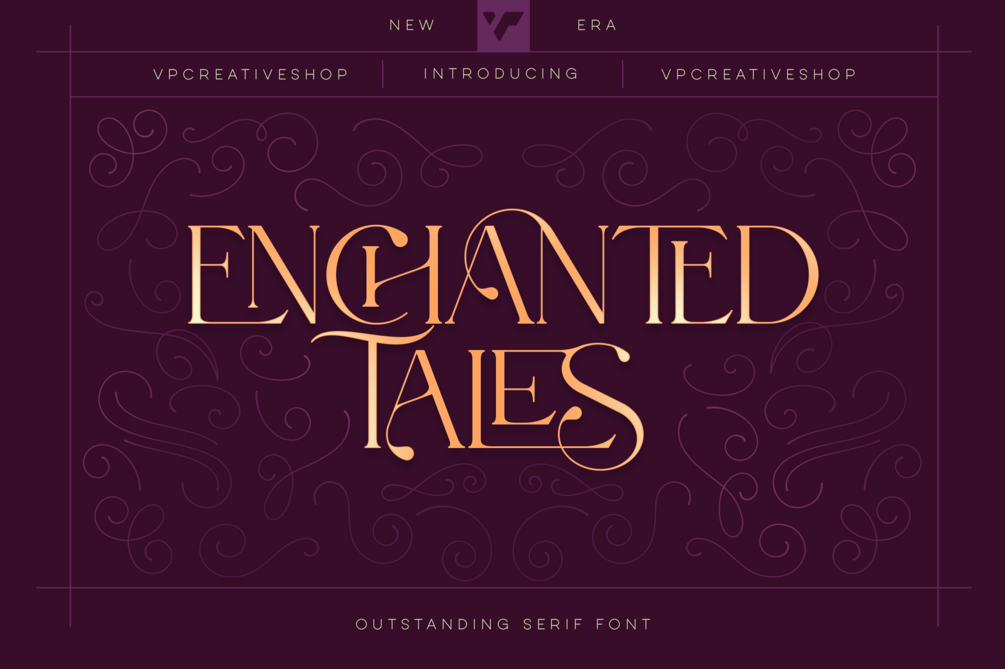 "Enchanted Tales" is a captivating serif font that offers a blend of classic elegance and modern versatility, making it an ideal choice for a wide range of creative projects. This font boasts an impressive support for 87 languages, ensuring global accessibility and inclusivity in your designs. One of the standout features of Enchanted Tales is its extensive collection of over 150 ligature glyphs, each meticulously crafted to add a unique touch of sophistication and flair to your text.